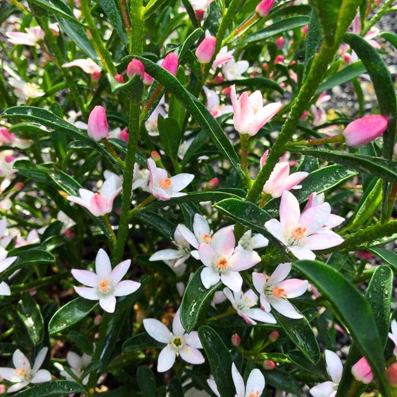 Το Eriostemon myoporoides ‘Flower Girl Pink’ είναι ένας γοητευτικός, συμπαγής αειθαλής θάμνος, πολύτιμος για τις μάζες των απαλών ροζ, διακριτικά αρωματικών λουλουδιών του που εμφανίζονται την άνοιξη.