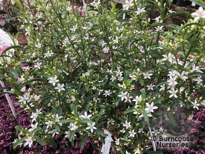 Είναι ένας συμπαγής, αειθαλής και αρωματικός θάμνος με λευκά άνθη σε σχήμα αστεριού με ροζ μπουμπούκια, που ανθίζει από την άνοιξη έως τα τέλη του καλοκαιριού